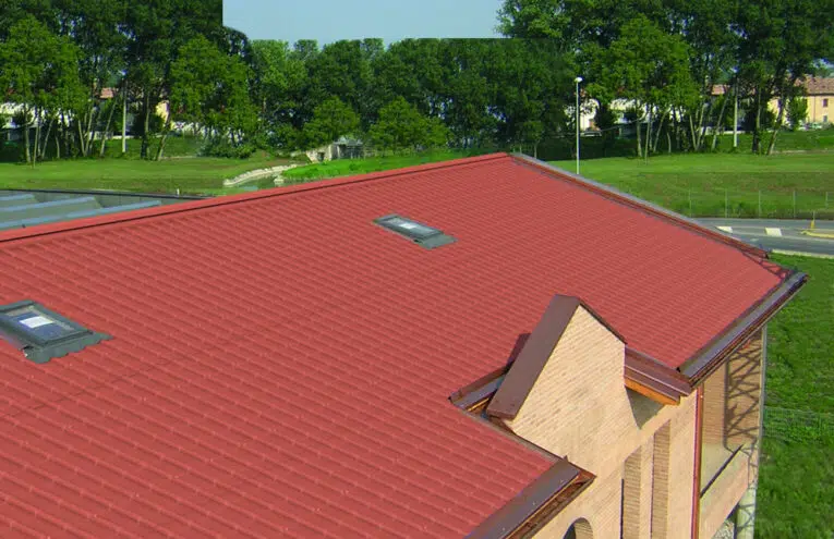Coppo Corinzio è la lastra metallica a forma di tegola romana, con una parte piana alternata ad una ondulata, in grado di unire la tecnologia del metallo alla tradizione delle coperture, un sistema all’avanguardia che mantiene i benefici delle coperture in cotto e ne mitiga i difetti, permette una corretta ventilazione e una minore usura sul lungo periodo rispetto al cotto tradizionale.